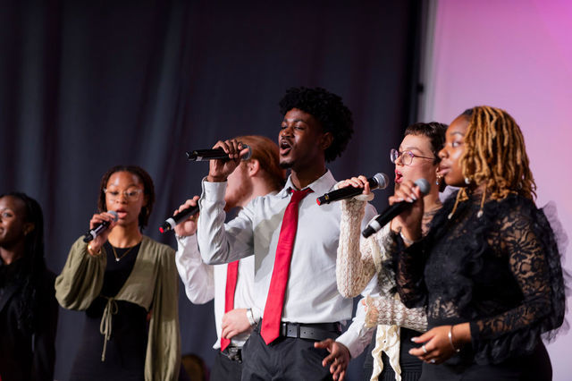 The program opened with a stirring rendition of “Stand by Me” by students from Booker T. Washington High School for the Performing and Visual Arts, setting the tone with a powerful message of standing in solidarity with survivors. Emcee Laura Harris then guided the audience through event highlights, including the “Her” art series on display just outside the ballroom—featuring work by NFNL Women’s Program graduate, youth mentor, and artist Robbie Hamilton.