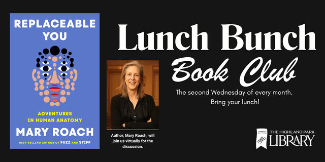 This month, we will be reading Replaceable You by Mary Roach. Ms. Roach will be joining the discussion via Zoom.